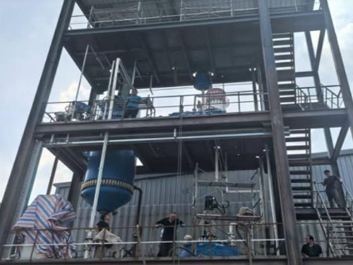 搪玻璃薄膜蒸发系统是一种新型的水处理蒸发装置,对处理含盐的酸性待处理溶液有很好的效果。搪玻璃薄膜蒸发器利用刮板的特殊构造和工作状态,使待处理的废水在罐内形成薄膜状,同时利用真空作用把蒸发出来的水蒸气抽出蒸发器外,蒸发后的浆料沿着蒸发器内壁流到下面的储槽中。